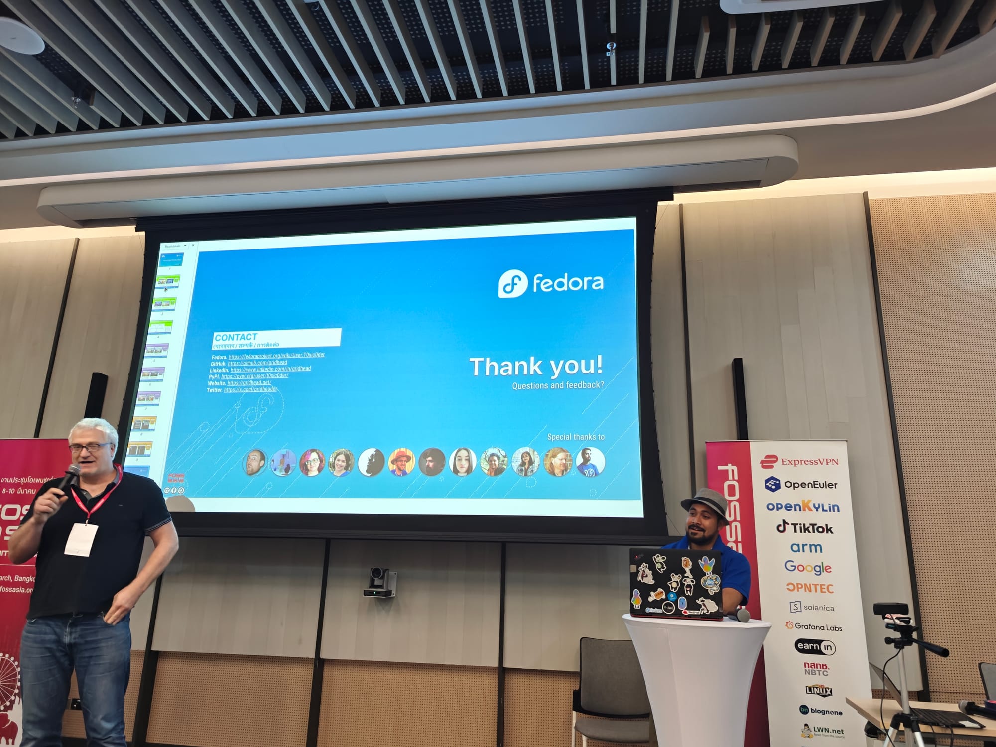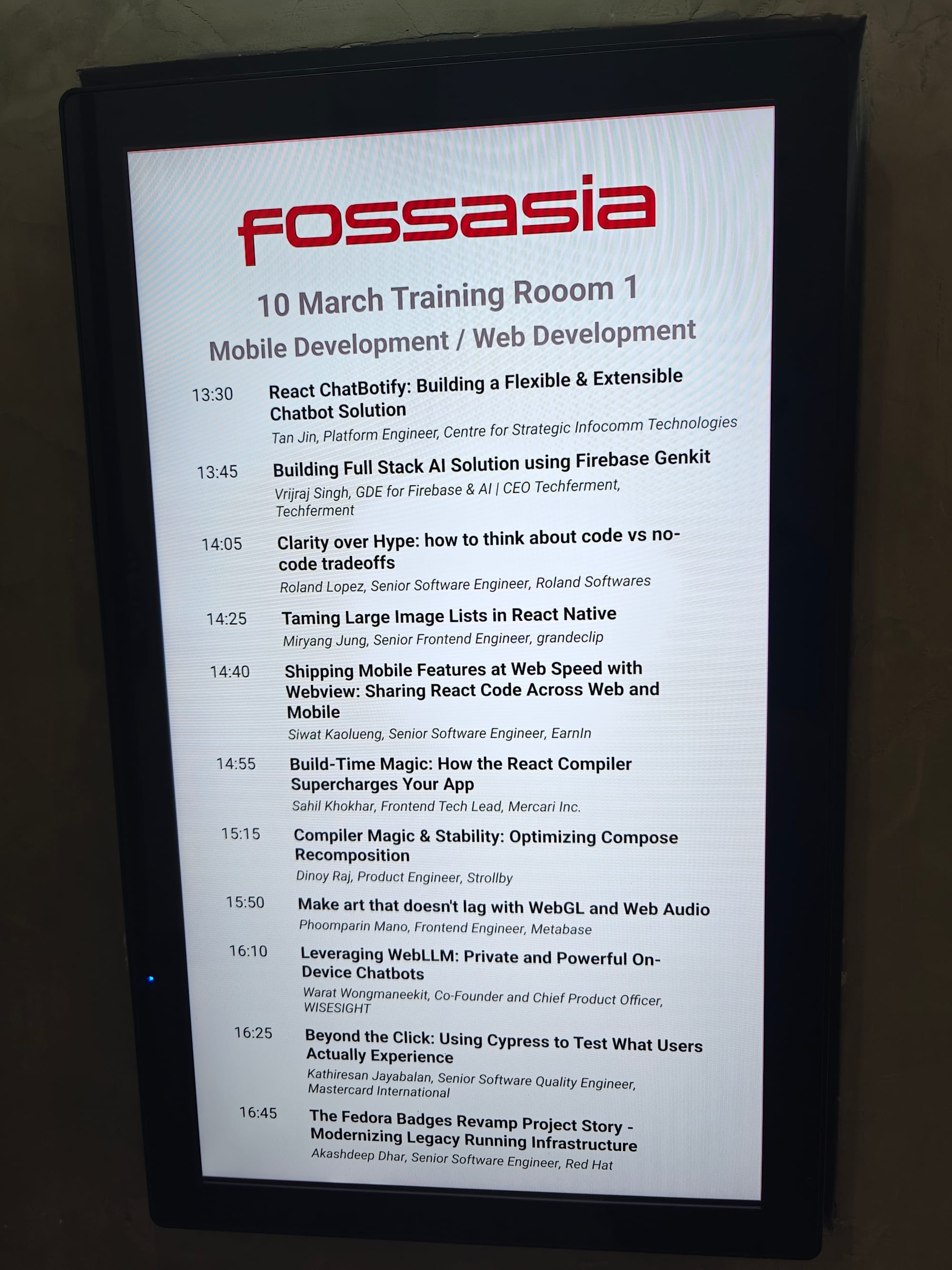 I had a mixed feeling about this, while this did allow for the corridor to be widened, the space for volunteer staffing at the community booths of the GNOME Foundation, Debian Project, and TeaLinuxOS Project was severely restricted. This meant that it was quite a struggle for folks who had to move away from or into the booth locations, as that required the folks around them to be moved as well. Just like the day before, we decided to assist Aaditya Singh with booth operations, all while trying to finish off the last hundred Fedora Project stickers that we had saved up from our participation at DevConf.IN 2026. While we had previously signed up for the ExpressVPN-sponsored FOSSAsia hackathon on Internet Security Development Using Artificial Intelligence, we ultimately decided to give away our designated slot to other younger participants who could not register in time. We discussed just how important this hackathon participation was for budding folks who were getting started with free and open source software, but not so much for us, since we have been around the scene for a long while now.