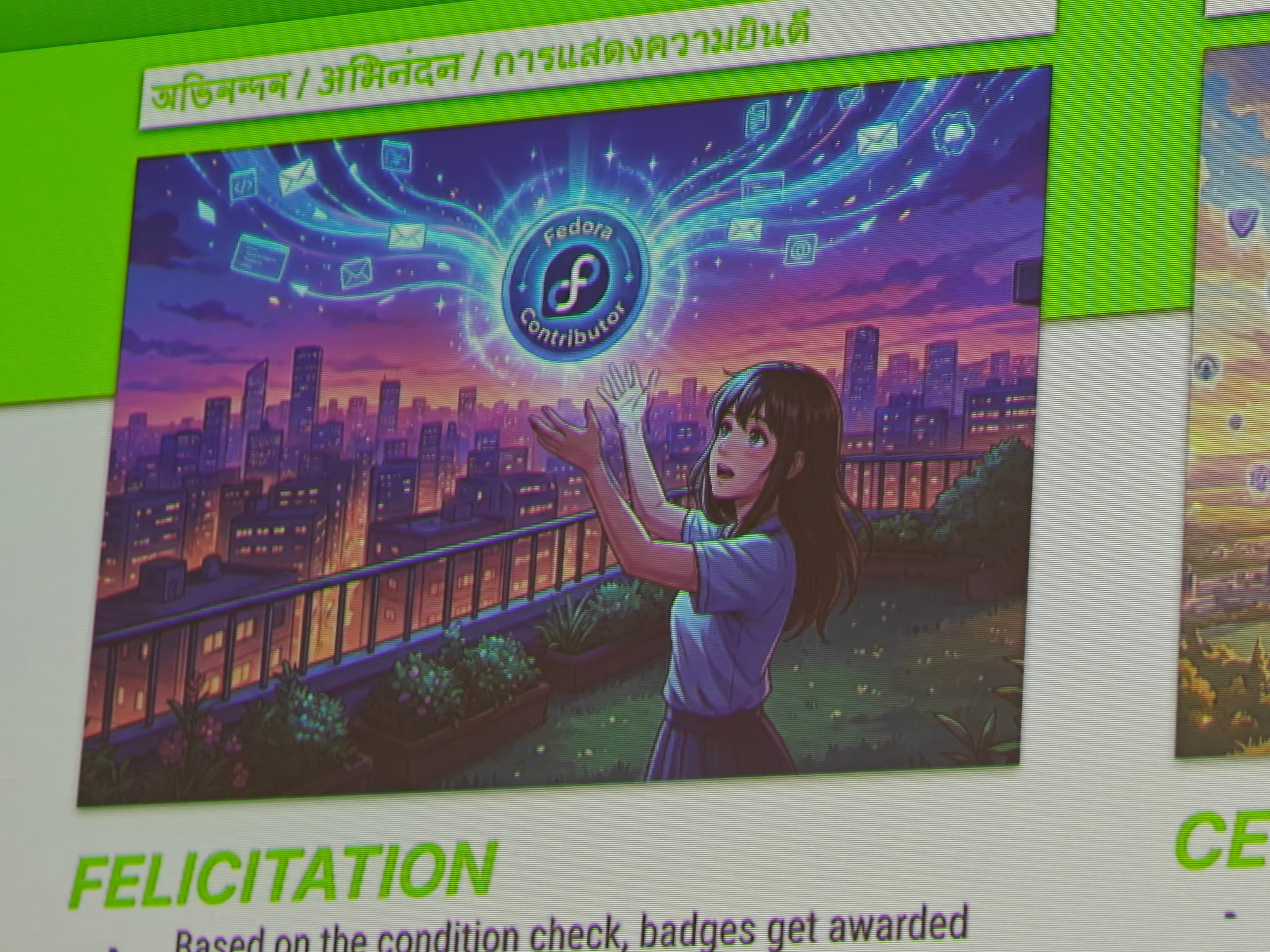 After sharing contact details with each other, he also checked in with me on whether I would be willing to present a proposal on best practices in contributor onboarding and retention in free and open source software communities. In our conversations, we realized just how crucial it had become to discuss governance policies among grassroots collaborators to ensure that their implementation does not come off as a negative surprise. I also shared my approaches to using LLM (Large Language Model) tooling to assist project maintainers and budding contributors by automatically addressing various low-hanging fruits. Empathizing with how stressful and overwhelming it ends up being for the maintainers and newcomers, respectively, AI tooling could be utilized for these positive purposes instead of worrying about its popularized contemporary taboo perspective. While I could not get him to participate in my Fedora Badges Revamp Project talk later that day, he said that he would send over some of his engineering friends, as he found the general idea of awarding contributions fascinating.