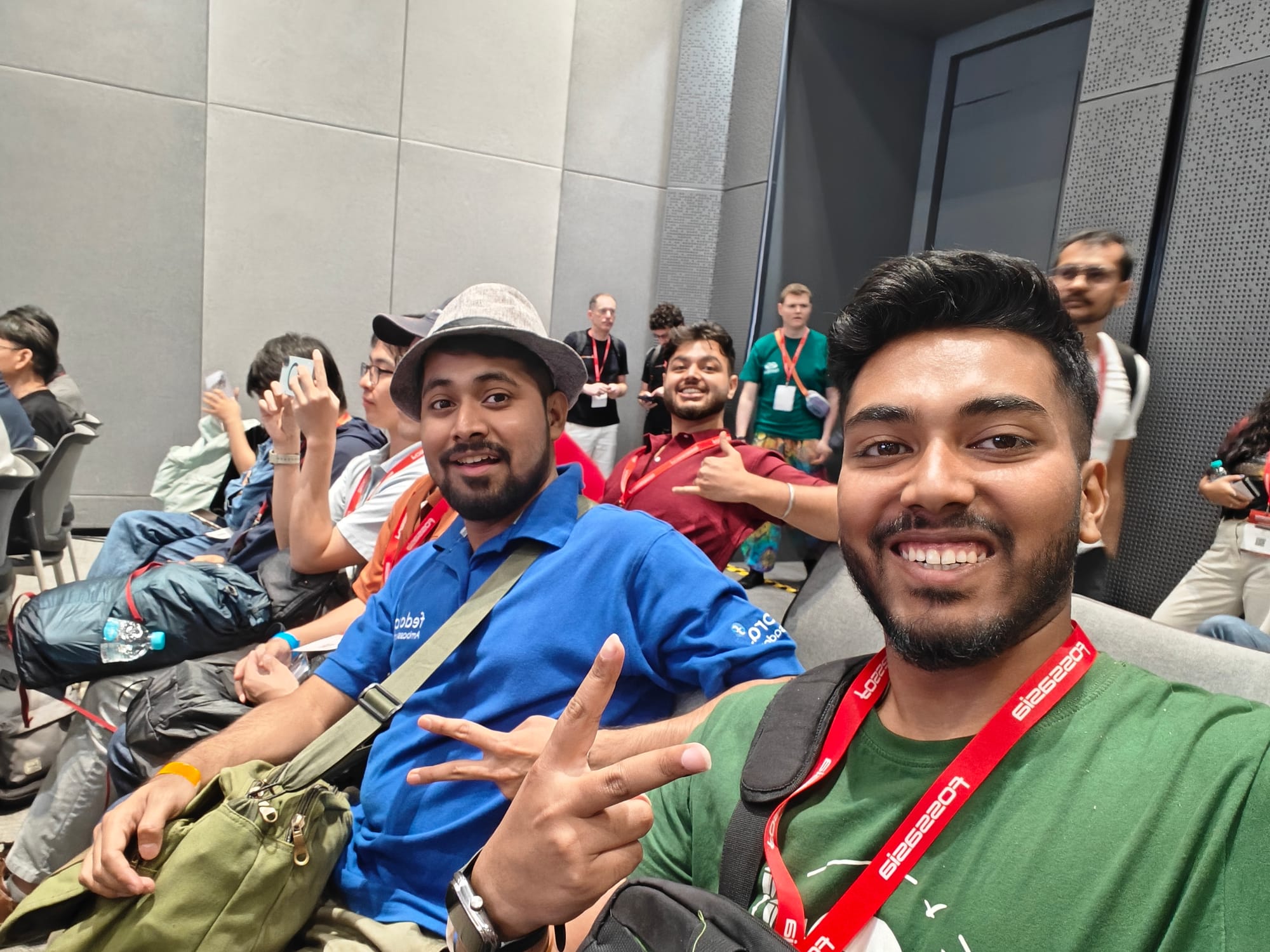 Out of all the participating groups that I interacted with in the competition hall, my conversations with the likes of Saksham Sirohi and Arnav Angarkar about their ideas stayed with me. They knew how they had to limit their actual implementation and were focused on delivering an MVP (Minimum Viable Product) that could be expanded upon. I also took some time to have a quick conversation with ExpressVPN employees who were serving as competition moderators there to understand what they look for in a certain implementation. Getting myself a cup of boba tea (and skipping it because I did not like it), I met up with the likes of Ajinkya R. and Dakshita Thakkar at the hallway track. On returning to the collective, I decided to lend my assistance to Pongsakorn S. at the KDE e.V. community booth as well, besides helping Aaditya at the GNOME Foundation community booth. I learned that he was using OpenSUSE Leap on his personal laptop and was interested in RPM packaging, while I was placing some of the last fifty Fedora Project stickers on the booth table.