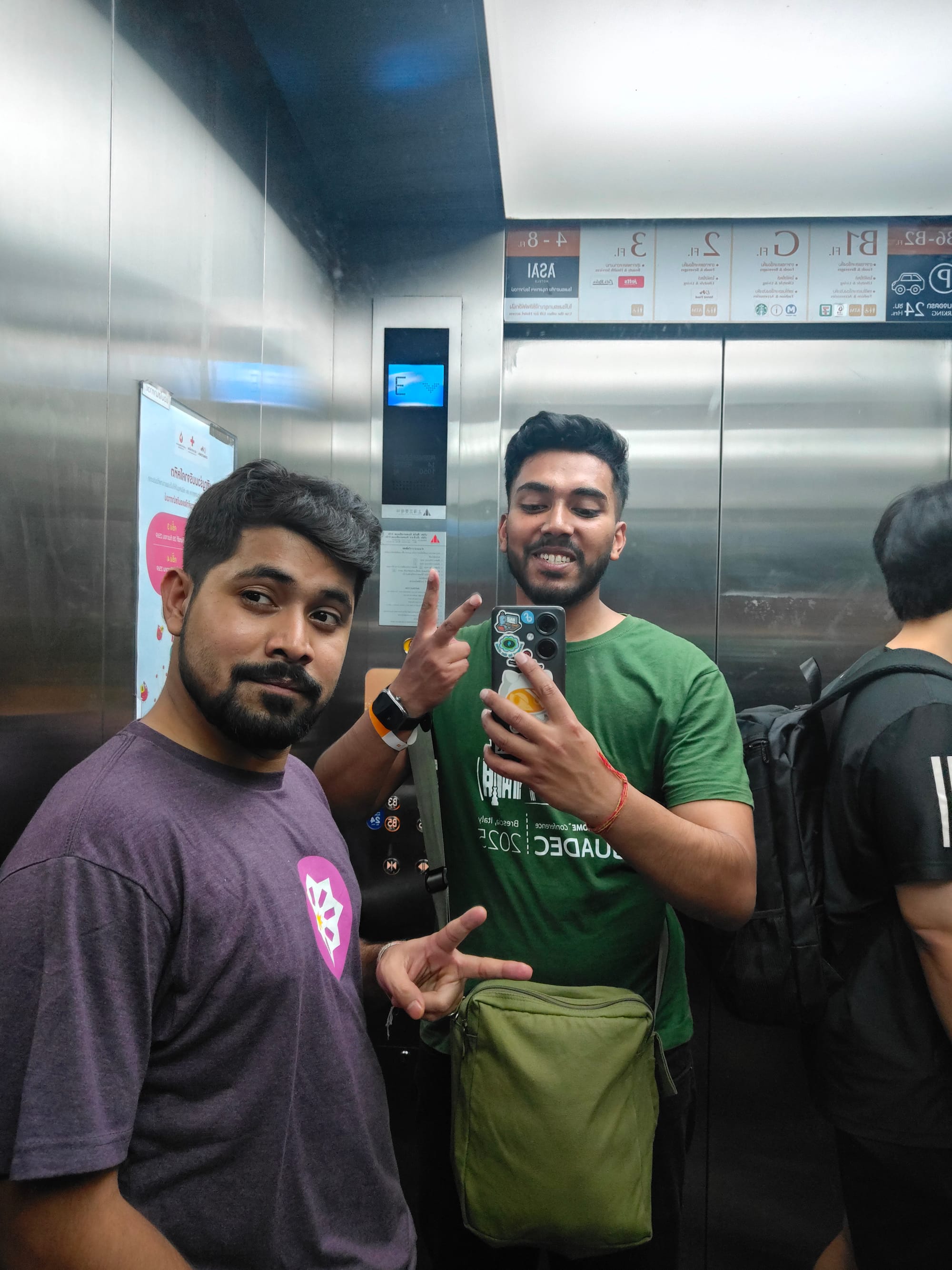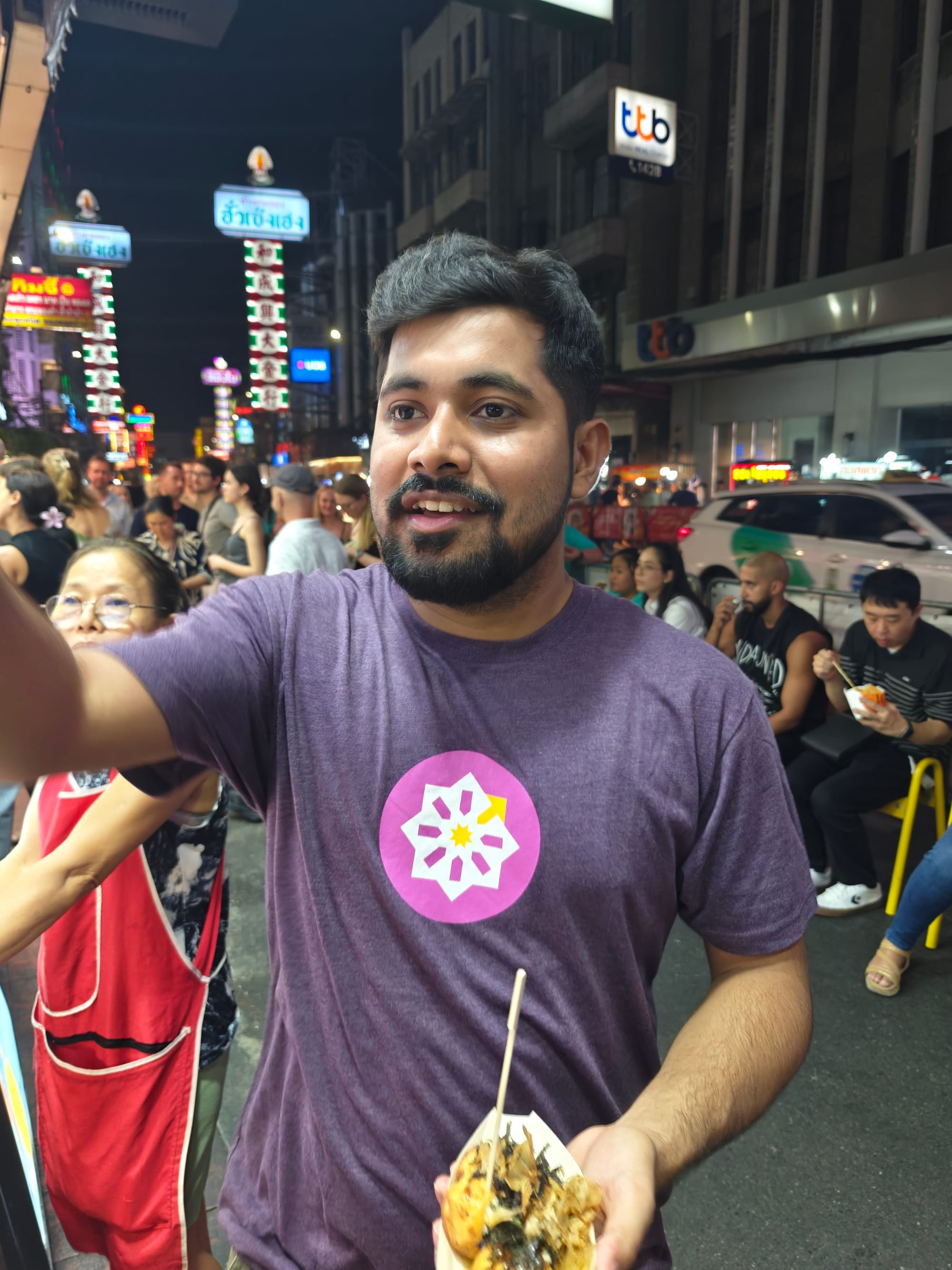 After briefly waiting for the participating teams to propose their project ideas and for the judges to complete their evaluations, our collective made our way into the main hall to witness the winner announcements at around 0530pm Indochina Time. As the winners were announced and the event concluded, Samyak and I deliberated on our evening plans, as we did not intend to continue our stay with the FOSSAsia 2026 attendees at the Night Market. After his proposal was turned down by the folks he was planning to invite, we formed a group of four, including him, Soundarya Rangarajan, Aaditya, and myself, to visit Bangkok Chinatown. This idea felt strategically sound as it had become a little too late to visit the riverside for a calming evening boat ride dinner, and coincidentally, Soundarya was staying at the same hotel as Samyak and me. After making a quick drop of Aaditya's belongings at my hotel room and taking some time to re-energize ourselves after the long second day, we started looking for cabs using the Grab application at around 0700pm Indochina Time.